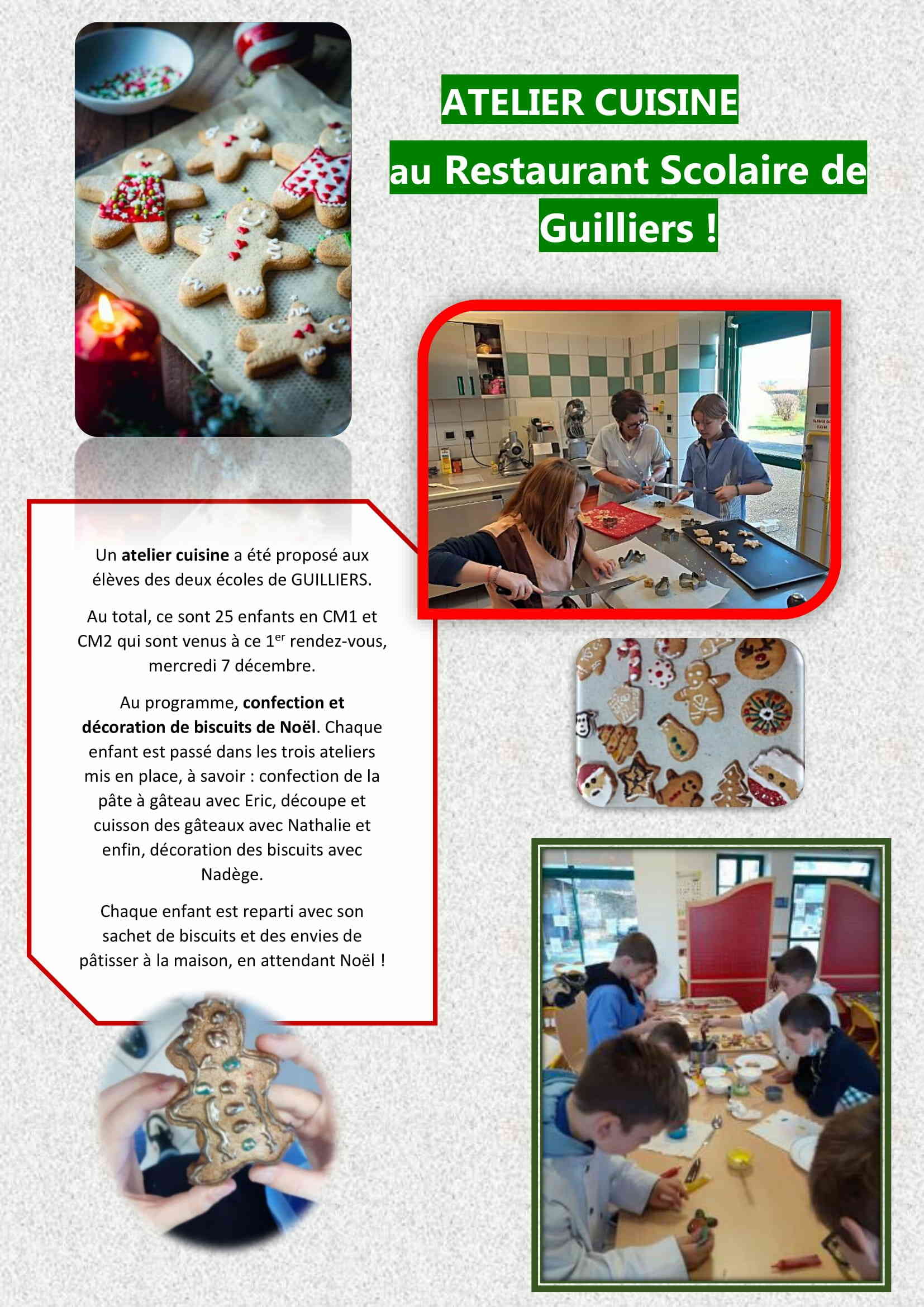 « Bénévolement, ils ont reçu les enfants de nos deux écoles pour leur proposer cet atelier cuisine de fabrication des biscuits de Noël. Cette animation a été gratuite pour les enfants« , ajoute le maire Joël Lemazurier. Ainsi cinquante-six enfants ont participé à cette première édition de l’atelier cuisine, mercredi 7 décembre 2022. »