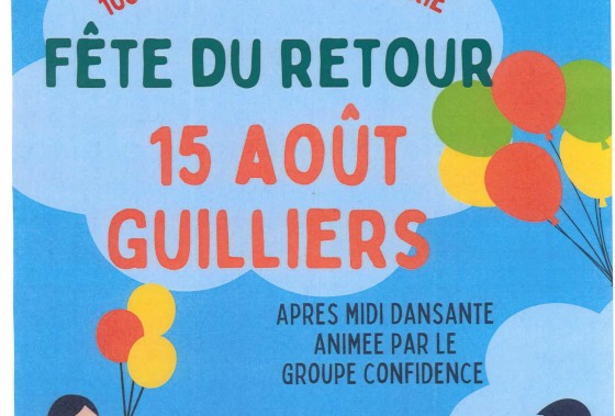 Le 15 août approche… L’APPEL de l’école Sainte-Marie prépare activement la Fête du Retour qui aura lieu le mardi 15 août. RESERVATIONS OBLIGATOIRES ! Les tickets sont à vendre auprès des commerces de Guilliers ou par téléphone en appelant au 06.81.50.68.92 ou 07.50.60.16.54.