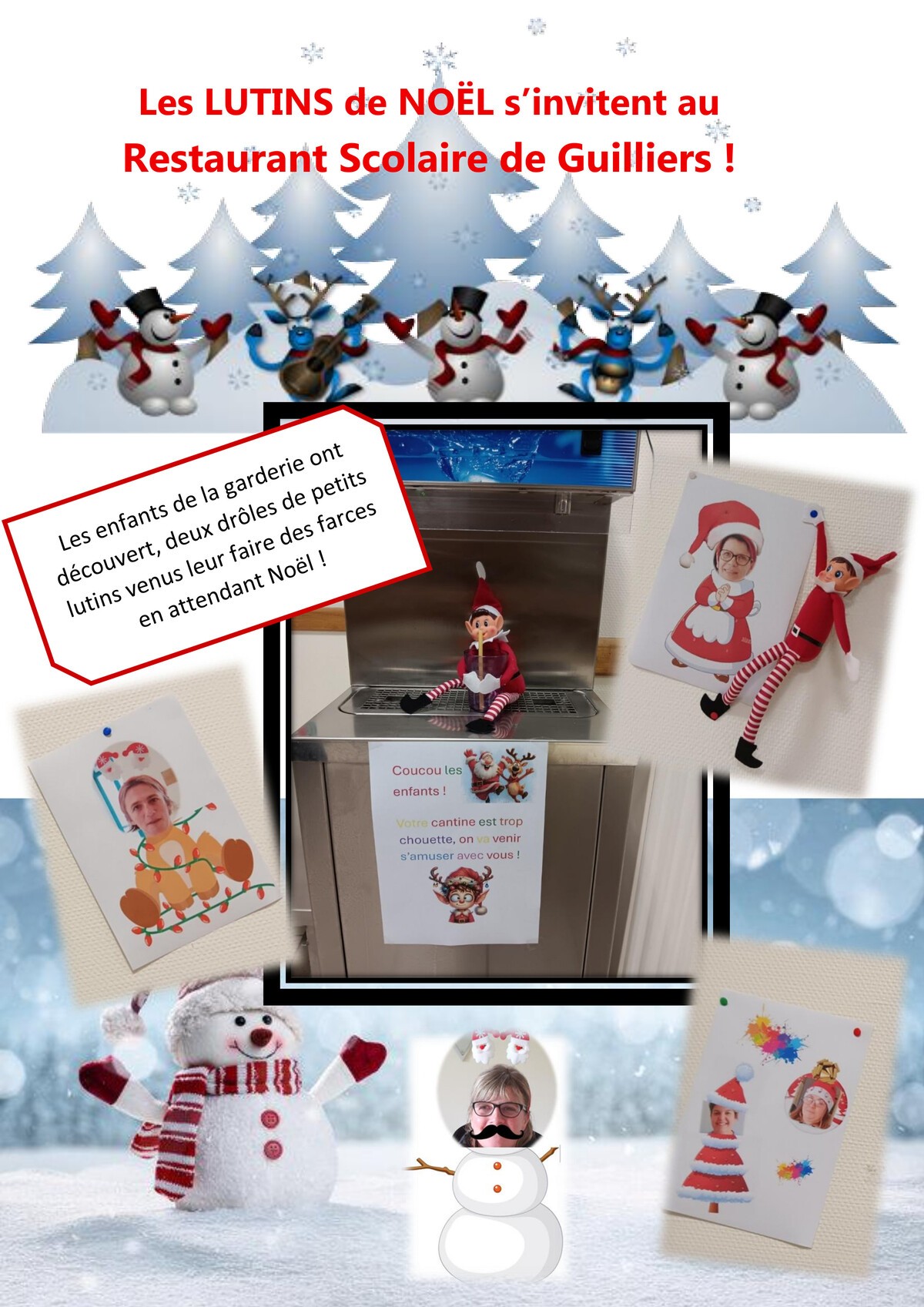 Les LUTINS de NOËL se sont invités au Restaurant Scolaire de Guilliers. Les enfants de la garderie ont découvert deux drôles de petits lutins venus leur faire des farces en attendant Noël !