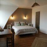 Pour 2 ou 3 personnes (possibilité de rajouter un lit 1 personne et/ou un lit bébé) grande chambre avec salle de bain et WC attenants. Petit déjeuner inclus.