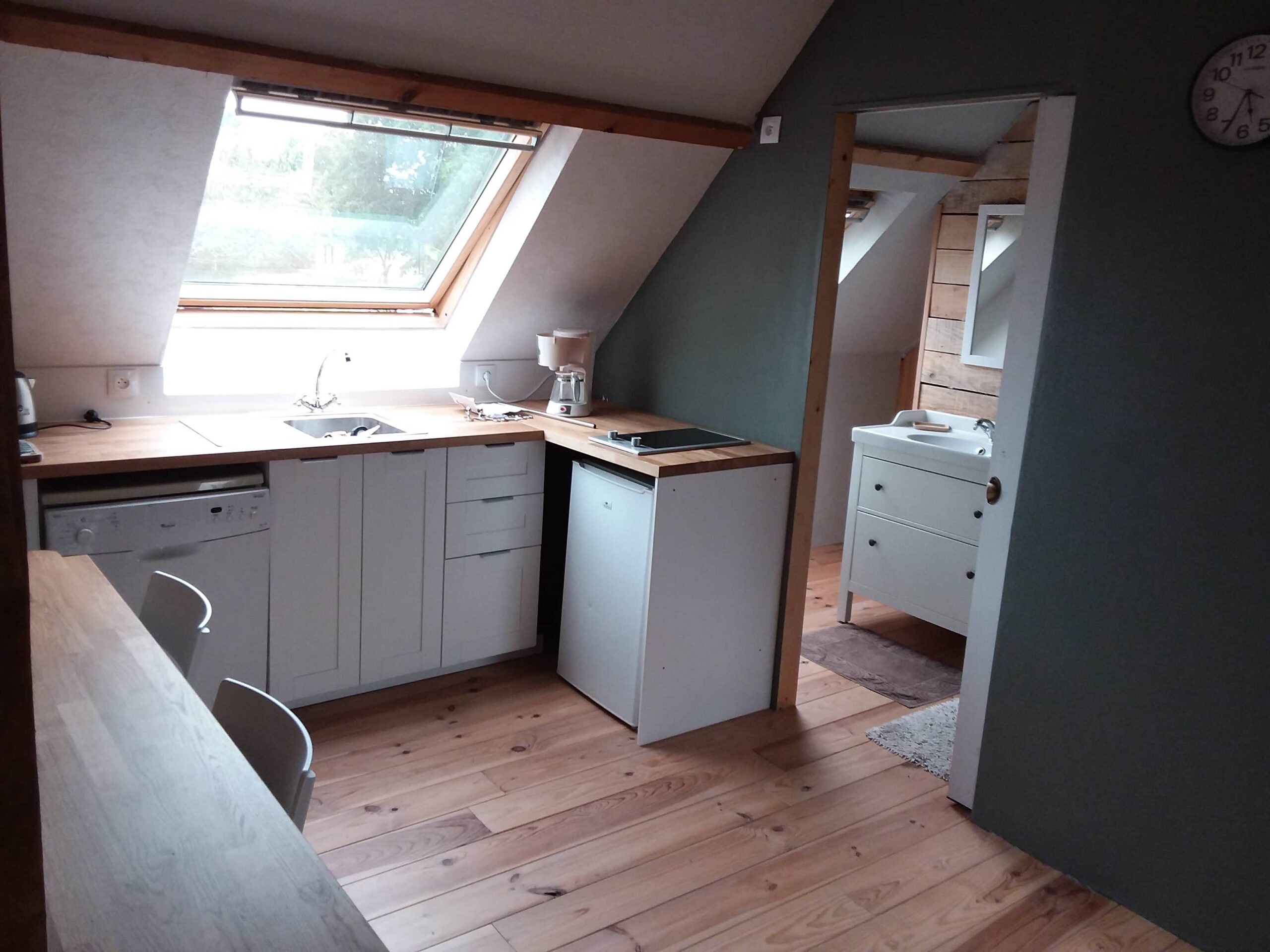 • un gîte pour 4 personnes avec cuisine équipée se situe à l’étage comprend 2 chambres avec lit 2 personnes lit bébé accueil bébé sdb coin salon…
