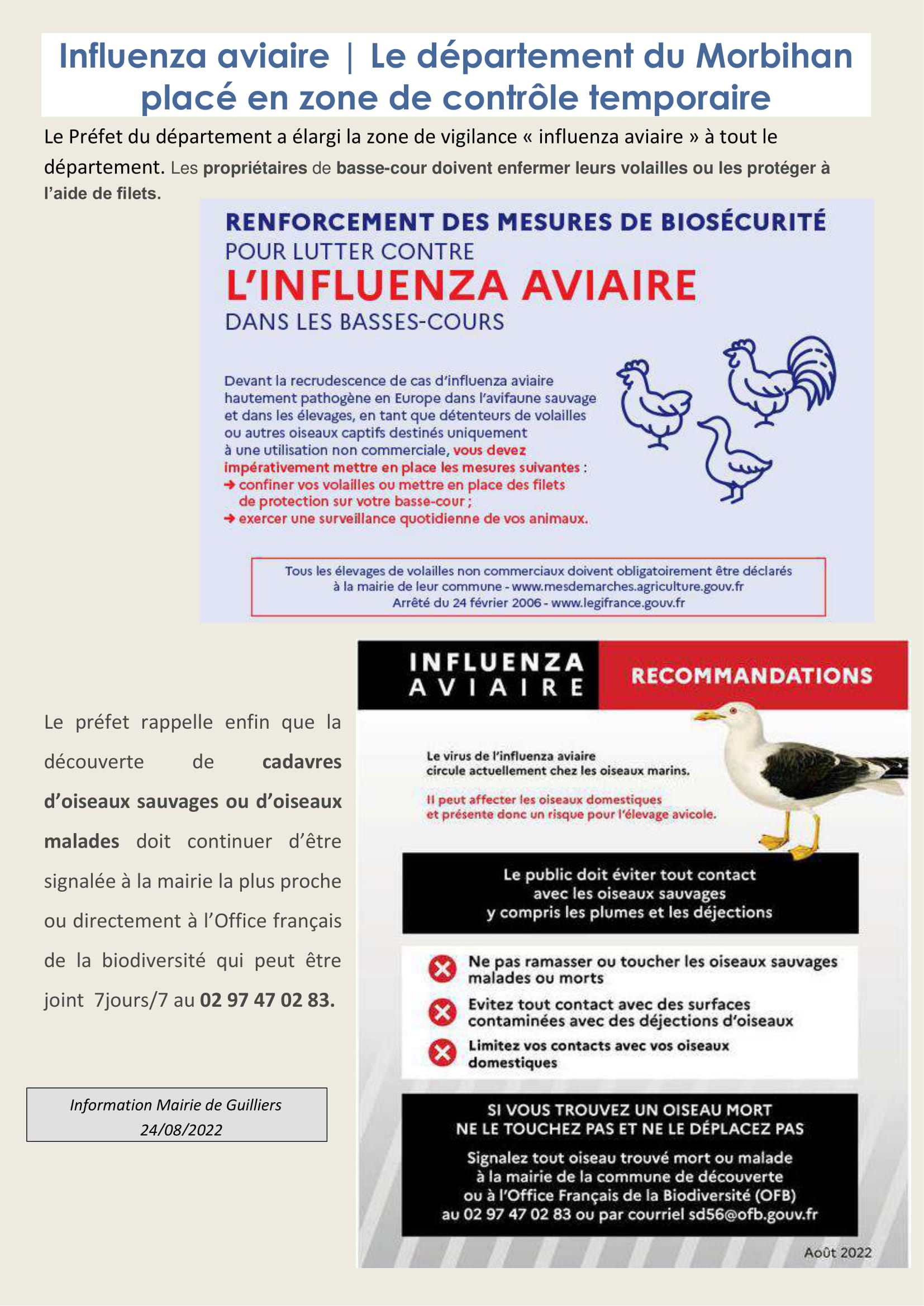 Influenza aviaire | Le Morbihan placé en zone de contrôle temporaire