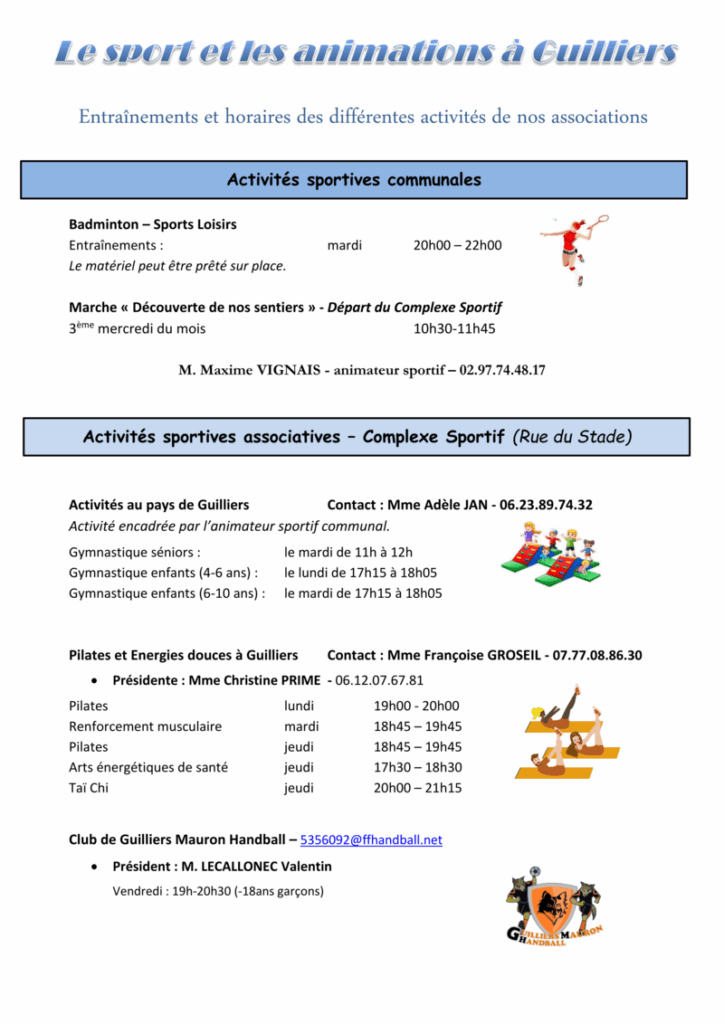 Pour toute question sur les activités sportives organisées par la Mairie, n’hésitez pas à contacter notre Educateur Sportif : Monsieur Max JÉHANNO : Contact animateur sportif : 02.97.74.48.17
